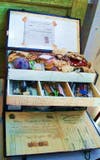 She makes the boxes out of reclaimed wood then fills them with treasures such as rusty skeleton keys, old electronics, typewriter keys, vintage jewelery, spotted bird eggs, old black and white photographs and book pages. “When people look at my art, I want them to see something unique, something they've never seen before, something undiscovered, yet, possibly vaguely familiar.”