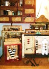 The found-object obsession began while living in France. Some materials are rescued, others come to her as gifts. One art piece features a pocket watch that belonged to Ben Alexander when he played officer Frank Smith on Dragnet. Payne Bolton's tiny books are filled with images, scraps of old text and dainty objects. The book she made for her 14-year old son has photos of him in Europe, made to look like vintage black and whites.