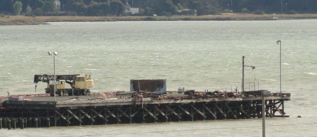 A Benicia Public Works heavy equipment crew assisted the efforts by using jackhammers to create an opening in the top of the pier allowing firefighters to spray the burning portion on the underside of the pier.