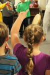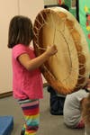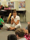 During a session with first graders, she enthralled them with her animated speech and unusual instruments. All young eyes were upon her as she moved, stood or retrieved another visual aid. What would she bring out next? She introduced them to the concept of solfège (“do re mi…”), similar to what is taught at college levels. She showed them how to ‘draw’ the music with their own bodies, further locking in the idea. They used almost all of their senses to experience the weight of a melody. This group of wiggling first graders became a rapt audience for more than 30 minutes, as they were transformed by the positive power of singing and rhythm.