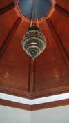 Work was going on in the sunroom, at the northern end of the house, which had originally been a gazebo, and which Tom had glazed with windows salvaged from a Mills College demolition. The cupola had been fitted with a skylight, and rough framing circled by electric lights was in place, ready to receive an antique stained-glass dome that I wouldn’t see until my next visit, in 2010.