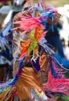 The regalia worn by the dancers is a colorful and exciting sight with feather bustles, fringed shawls and elaborate beadwork flashing about as they dance to the beat of the drums. This is also a competition powwow so winners in each dance category are selected at the end of the powwow.