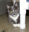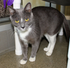 Lovebug is a beautiful grey cat with white chest and paws and is seeking a quiet adult household to take her in and keep her indoors only. She is spayed and ready to go.