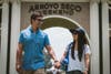 - A couple walk through the Arroyo Seco Weekend arch inside the festival grounds.