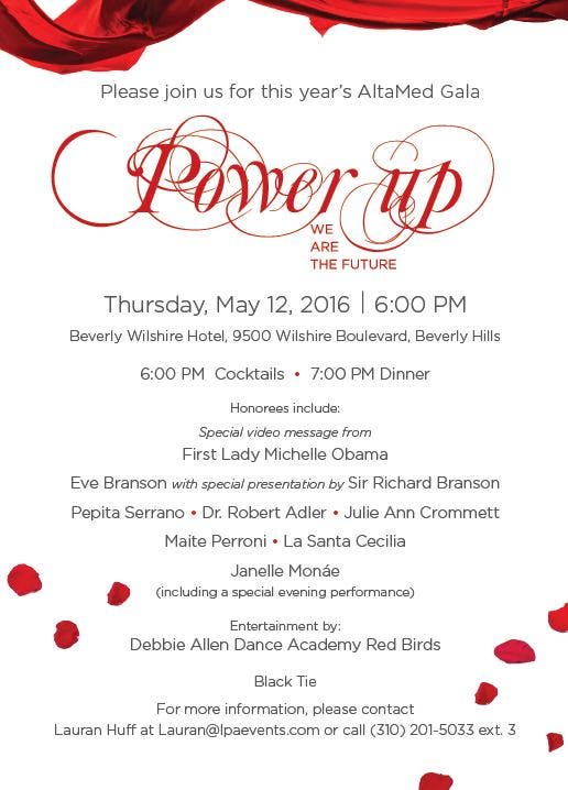 AltaMed is hosting the Power Up, We Are The Future gala on May 12, 2016 at The Beverly Wilshire Hotel in support of Empowerment Programs for Girls and Youth, creating equality for all girls in California. This unforgettable evening will include a cocktail reception and dinner, live auctions with exclusive experiences and one of-a-kind items, along with special guest honorees and a live musical performance.