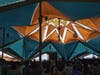 Walking over makeshift bridges towards the entrance to the festival, strangers’ dusty hands slapped against each other in a brief moment of camaraderie. Climbing the last steep dirt hill, an adult playground emerged over the horizon. Colorful fabrics covered abstract shapes that made up the various stages next to streets lined with booths of artisan crafts and food.