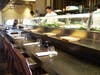 The patio leads to a main dining room and a black granite sushi bar, the center of the action. The vast menu includes the requisite sushi and sashimi as well as hot and cold dishes, tempura, and robatta for fish-wary friends.
