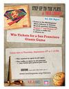 Come to the Burlingame Main Library or Easton Branch anytime between August 1st and August 15th to enter a raffle for a chance to Win Tickets for a San Francisco Giants Game (date of game is Thursday, September 5th, 2013 at 7:15 PM).
