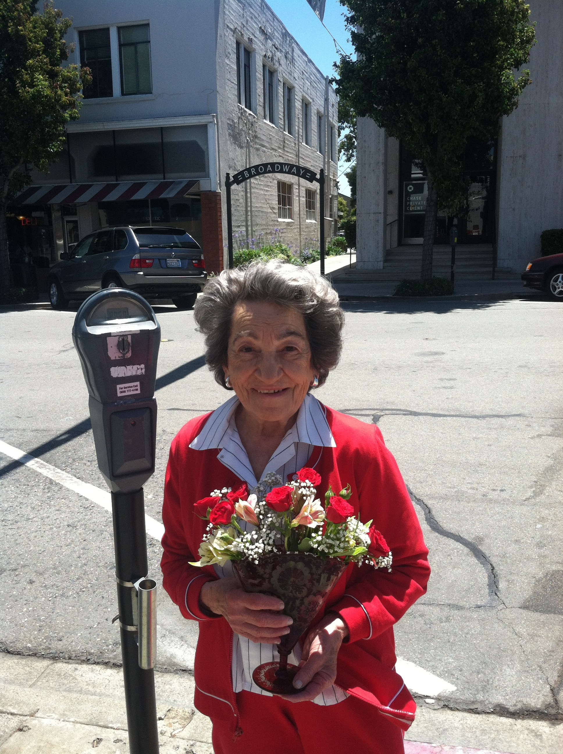 Rosman bought the flowers at the local floral shop on Broadway to celebrate her 90th, saying that her two sons live too far away to buy them for her.