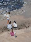 Her seascape series represents “mankind’s relationship with the ocean," and shows how small the human subjects are compared to the enormity of the ocean. Whether children playing on the beach, building castles, or strolling; the ocean, sand and waves are the subject with the humans as sub-plots. As one title suggests, “Sea Creatures” are the humans, part of the landscape. Painting the people as tiny as hermit crabs, Warnock works her perspective to push the scale of human versus natural elements. We find ourselves drawn into her scapes, enjoying the interplay, wanting to explore, being captured in her natural water-world. Having earned her art degree at the University of Utah, she has lived and worked in California most of her career. She has exhibited the Peninsula Museum of Art and San Mateo County History Museum.