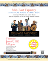 Mid-East Tapestry perform Thursday, June 6th, 2013 at 7:00 PM in the Lane Community Room of the Burlingame Public Library, 480 Primrose Road, Burlingame, CA 94010