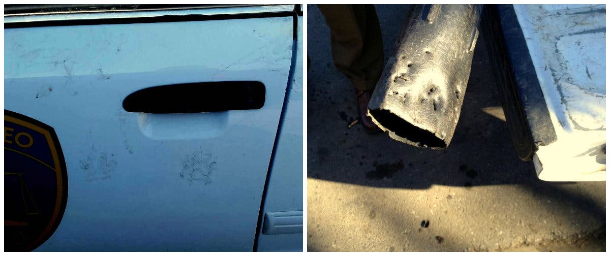 “The SMPD officer diverted the dogs’ attention using his air horn and the dogs sprinted back towards his patrol vehicle, now lunging at the vehicle and attacking the driver side door as the officer tried unsuccessfully to exit the vehicle, with both dogs viciously clawing and biting at the door,” police said.