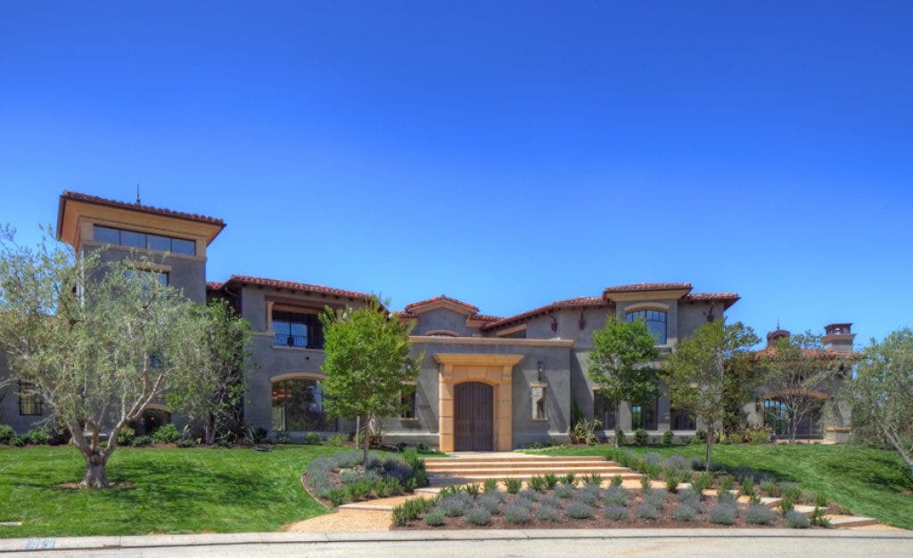 This spectacular brand new Tuscan is located on the top street of The Estates of The Oaks, offers panoramic pastoral views and is sited on an enormous 1.86 acre lot. Designed by renowned architect, Richard Landry, this true, one-of-a-kind estate features superb quality finishes, include steel framed windows, walls of glass, stone & hardwood floors, iron & glass doors, and open beam ceilings. Amenities include six en-suite bedrooms, true gourmet kitchen, family room, big media/game room , study/office. Bonus room, large gym, spa/massage room, elevator, covered patios with fireplace, gated courtyard entry and gated garages. The stellar grounds include expansive rolling lawns, sunken basketball court, gazebo, pool, spa, fruit & shade trees, stone patio & walkways, and gorgeous views.