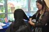 Rizelle left the doll with her mom and sat in the beautician’s chair.