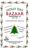 The Congregational Church of Soquel presents a Holly Day Bazaar with handmade gifts, tree decorations, baked goods, cards, and other items for sale.