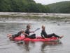After a mile, we turn around and leisurely paddle downstream back to the Banjo Pier. We stopped on the way to say hello to Toby’s sister Gaby and her two young towhead sons, Jack and Drew, who were playing along the banks. Drew is appropriately dressed like a pirate.