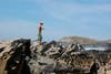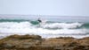 Sure enough, the west end of the beach that a few hours earlier had been exposed rock was now covered with water. Suddenly out of nowhere, a set broke revealing left point-reef set up that looked good.