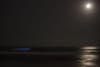 When Bioluminescent Plankton are agitated, the give off a blueish glow in the water. Because the camera has the ability the capture the glow, the pictures are an accurate representation of what the ocean looks like at night.