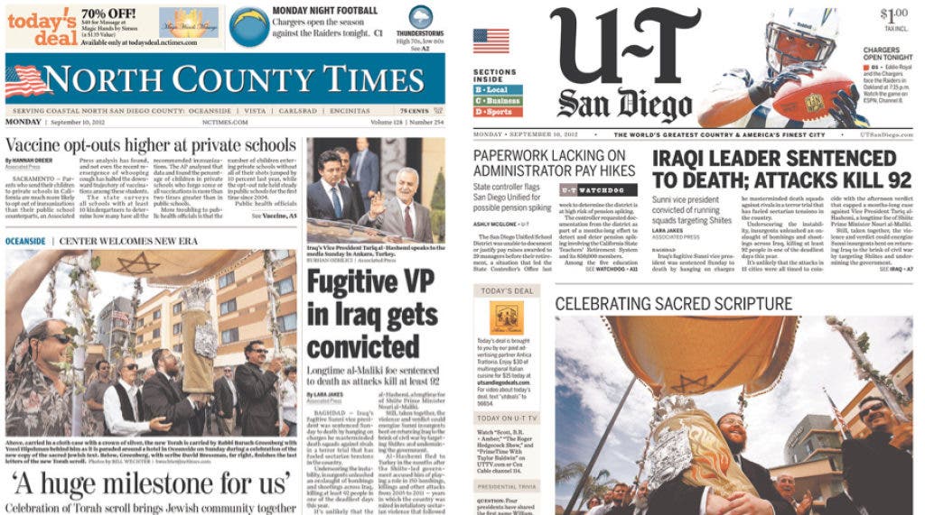 The End of the North County Times article shows concerns about the Union-Tribune takeover of our local paper.