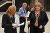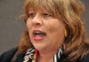 She surrendered the wireless microphone after several shouted reminders.