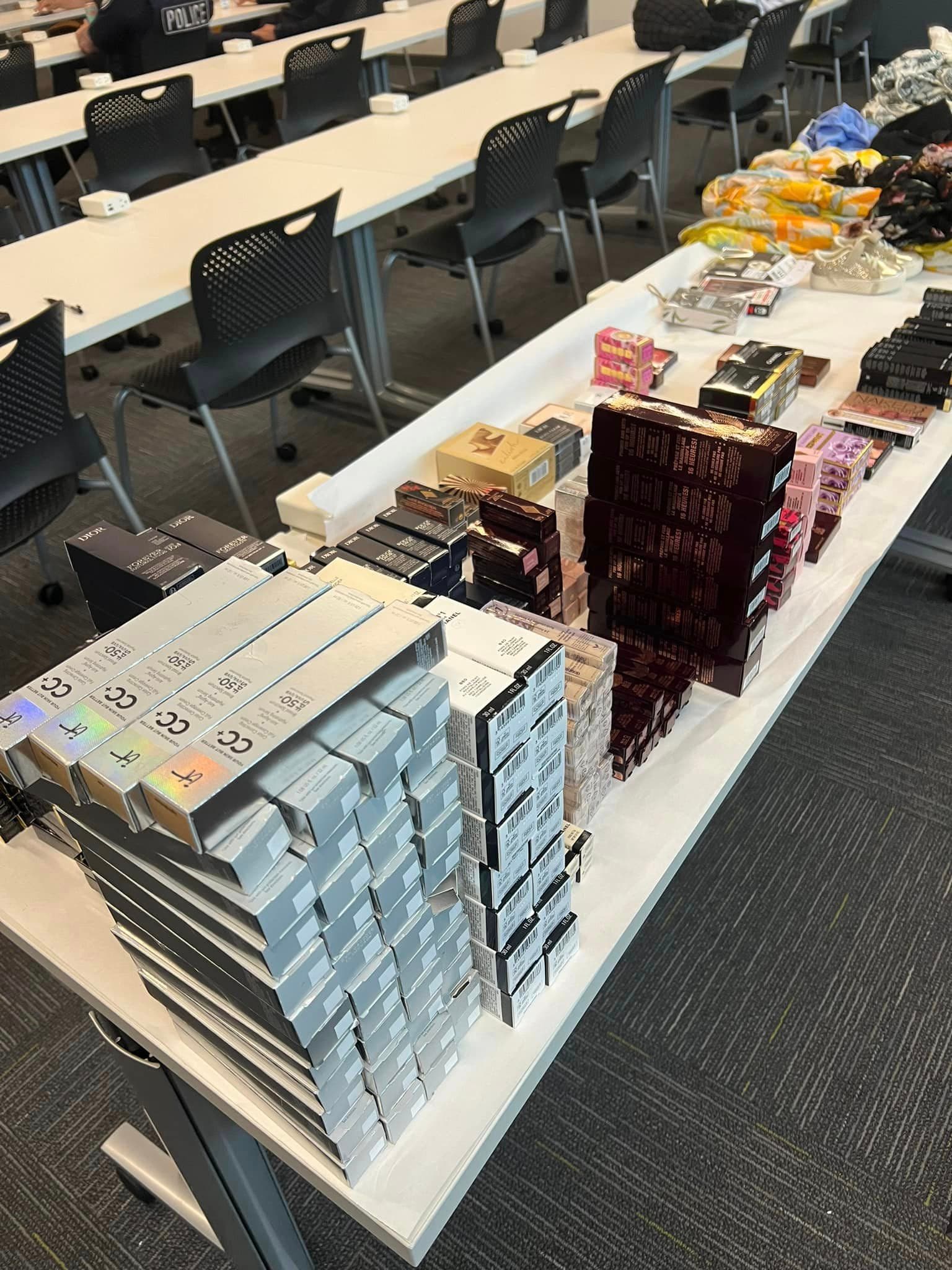 According to the post, during the van search, officers found clothing and a large black bag containing new cosmetics worth thousands of dollars.