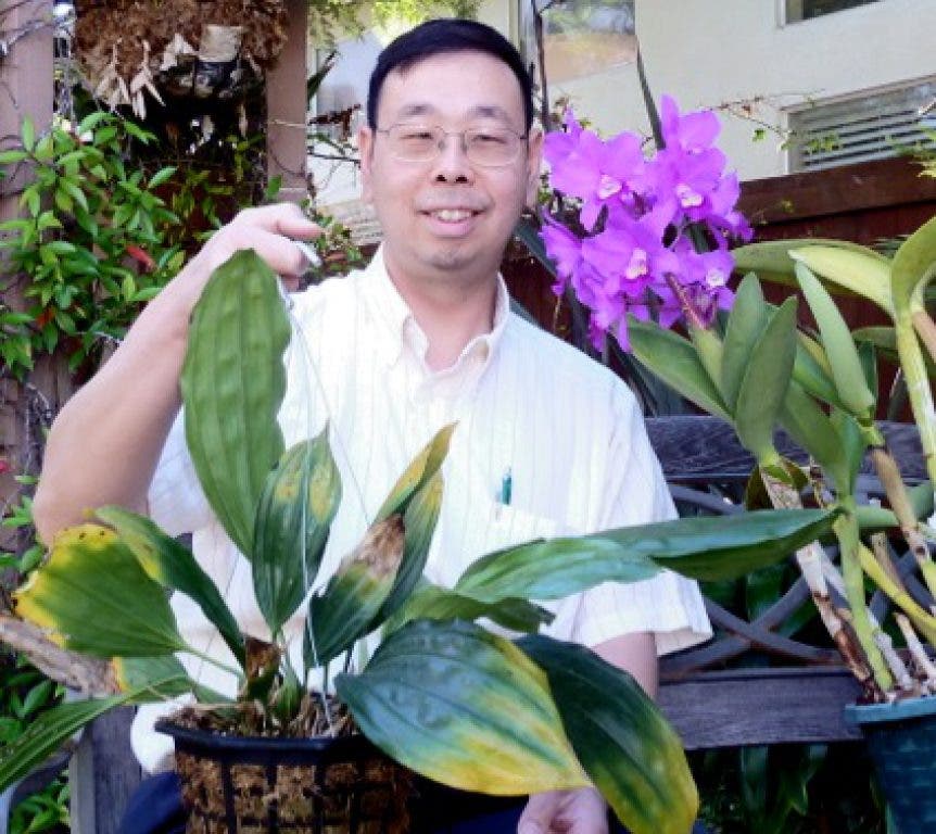 Dr. Ho, a practicing cognitive neurologist in Rancho Bernardo, neuroscience researcher and volunteer professor in neurology at UCSD, has been an avid orchid enthusiast and collector for about 12 years. Starting with one phalenopsis back when he first moved to San Diego for his neurology fellowship training, he has expanded his collection over the years to include hundreds of plants consisting of paphiopedilums, cattleyas, cymbidiums, oncidiums, species and others. In the last 4 years, he has focused his collection primarily on paphiopedilum, stanhopea and neofinetia, maintaining them in a home greenhouse and shade structures. About a decoade ago, he joined the Palomar Orchid Society (POS) and the American Orchid Society (AOS), and has been active as an officer in the POS for many years, holding the position of president for the last 4 years. As his latest project, he is now fanatical about collecting as many stanhopea species and hybrids as can be found, and has some interest in trying to hybridize them as well.