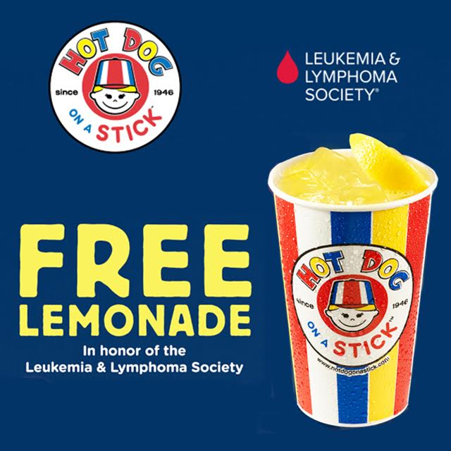 “Hot Dog on a Stick is famous for our fresh hand-stomped lemonade and our friendly and smiling service,” said Lisa Merrell, Vice President of Hot Dog on a Stick. “National Lemonade Day is a perfect occasion to celebrate not only our signature lemonade, but also our commitment to helping others and sharing joy and hope. Like Hot Dog on a Stick, The Leukemia & Lymphoma Society makes every day brighter. Please enjoy a free lemonade on August 20 and join us as we raise funds and awareness for an organization fighting to end blood cancer. It’s sure to ‘stick a smile on your face.’”