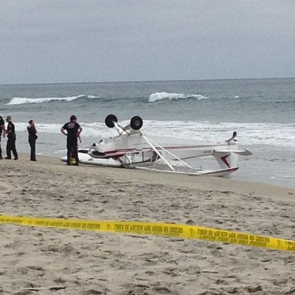 Pictures from the scene showed a single engine plane, upside down in shallow water, on a crowded beach.