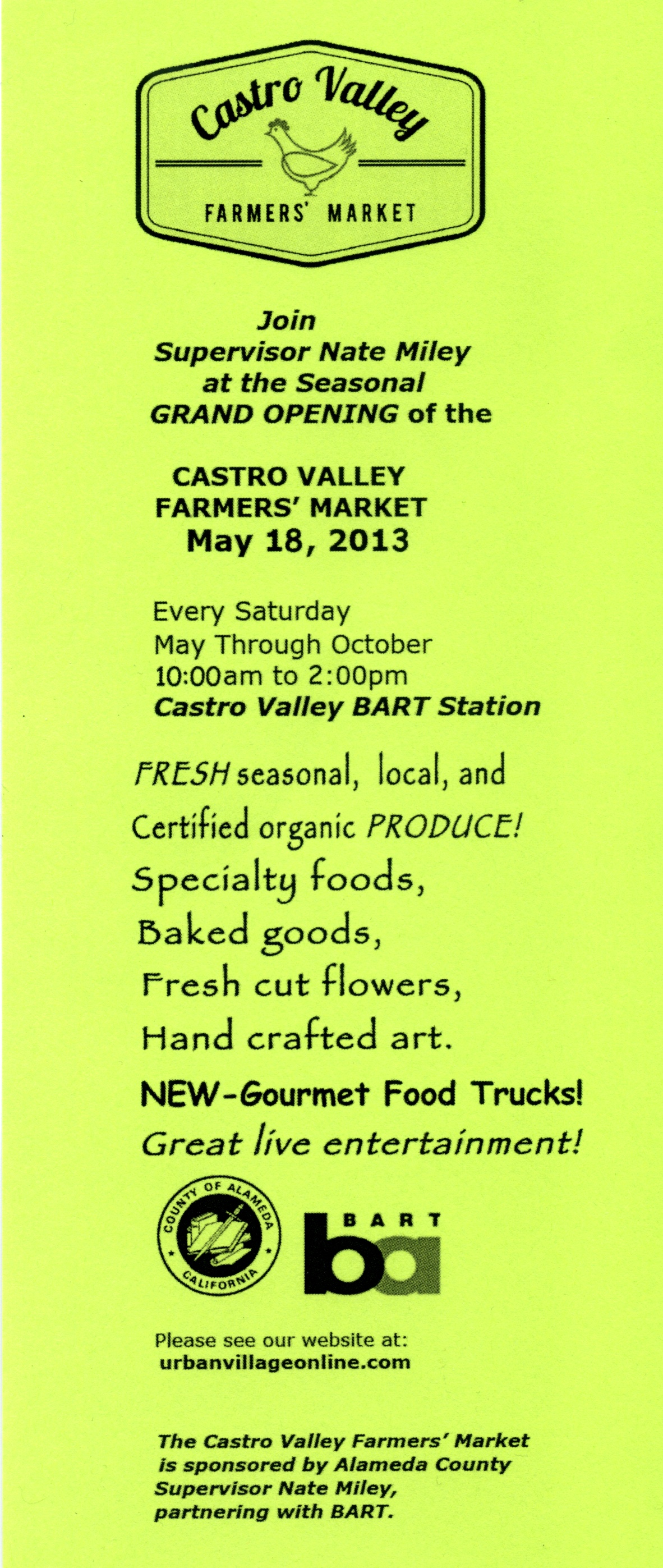 Opening Saturday, 10:00 am to 2:00 pm May 18, 2013.