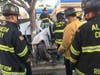 According tot he fire department, "A male driver suffered a medical event while driving, lost control of his vehicle, struck a tree and became pinned in the car. Despite the vehicle sustaining extensive front-end damage and intrusion into the driver's compartment occurring, firefighters extricated the patient, who was entangled in the vehicle's dashboard, gas & brake pedals, within 35 minutes."