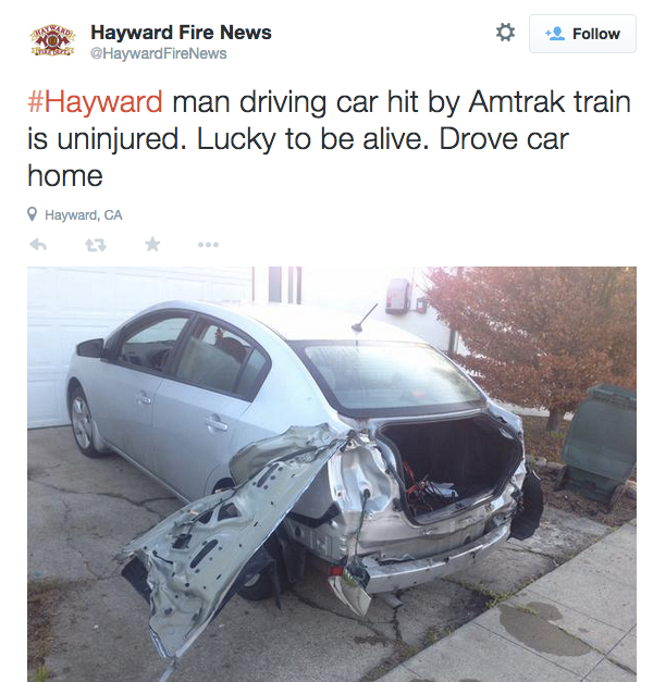 Elderly Man Drives Away Unharmed After Collision with Hayward Amtrak Train