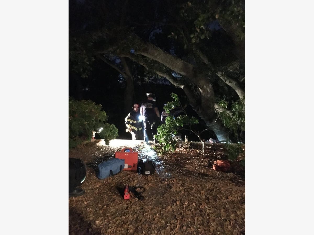 Firefighters performed a low angle technical rescue after the man fell down the hill in his backyard.
