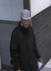 The suspect is described as black, in his late 20s or early 30s, 5 feet 3 inches to 5 feet 6 inches tall with a thin build. He also wore white stud earrings, sported a mustache and had a tattoo on the right side of his neck that possibly spells out, “CALI.”
