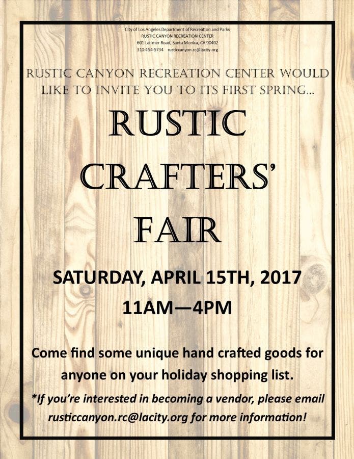 When: April 15th, 2017 Time: 11am - 4pm Where: Rustic Canyon Recreation Center Contact: rusticcanyon.rc@lacity.org or 310-454-5734