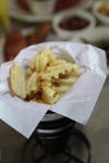 For dessert, Waffle Chix has a selection of shakes, Italian ice, savory pies and sweet waffle treats such as the Raspberry Red Velvet (red velvet cocoa Belgian waffle with raspberries and mascarpone topping) and the Chunky Monkey (Belgian waffle with the works—caramel, chocolate, marshmallow cream and pecans).