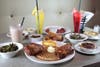 Other options include creative selections such as the Waffle BLT Salad (spinach, eggs, applewood smoked bacon, tomatoes, blue cheese crumble, and waffle croutons tossed with red wine-sherry vinaigrette).