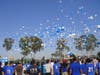 At game's end family, friends, fans, students, and many other athletes from other sports gathered at midfield to release balloons with personal messages written for Eddie and Carlos.