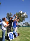 Before the start of the game a visibly emotional Artiaga shared kind words about the two players that were being honored, and urged the fans in attendance to purchase $5 balloons, $10 taco plates, and bid on a silent auction of various sports memorabilia of which the proceeds will go to the mourning families, who also were slated to receive monies from the postgame dinner at DP’s Pizza Pub in La Habra.