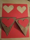 Cut out the design of your choice for your banner embellishments. In this case, hearts were cut out of construction paper. Glue your embellishments to blank triangles.