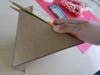 Use your ruler to draw a line across the width of the triangle 1 inch down from the shortest side of the triangle. Fold this line over and cut of the access paper edges.