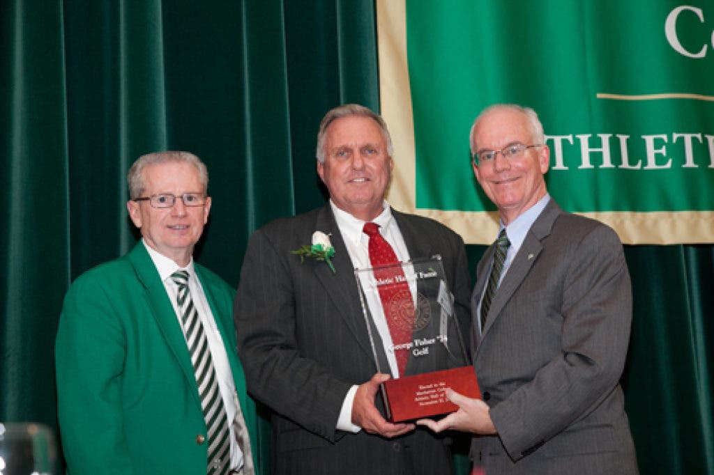 George Fisher ’74, former member of the Manhattan College golf team and resident of Upland, Calif., was inducted into the Manhattan College Athletic Hall of Fame at its 34th annual ceremony on Saturday, Nov. 10 in Smith Auditorium. In addition to Fisher, seven other inductees were also honored at the event, which is sponsored by the Manhattan College Alumni Society.
