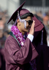 Graduates wore celebratory leis and made calls to family, directing them to where they would be in the student seating area, set up in the east end of the field. Many decorated their mortar boards with their future plans, including schools such as Cal Poly Pomona, University of La Verne and Cal State Fullerton.