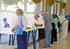 In Claremont, Taylor Hall played temporary home to a large polling place that was buzzing with activity.