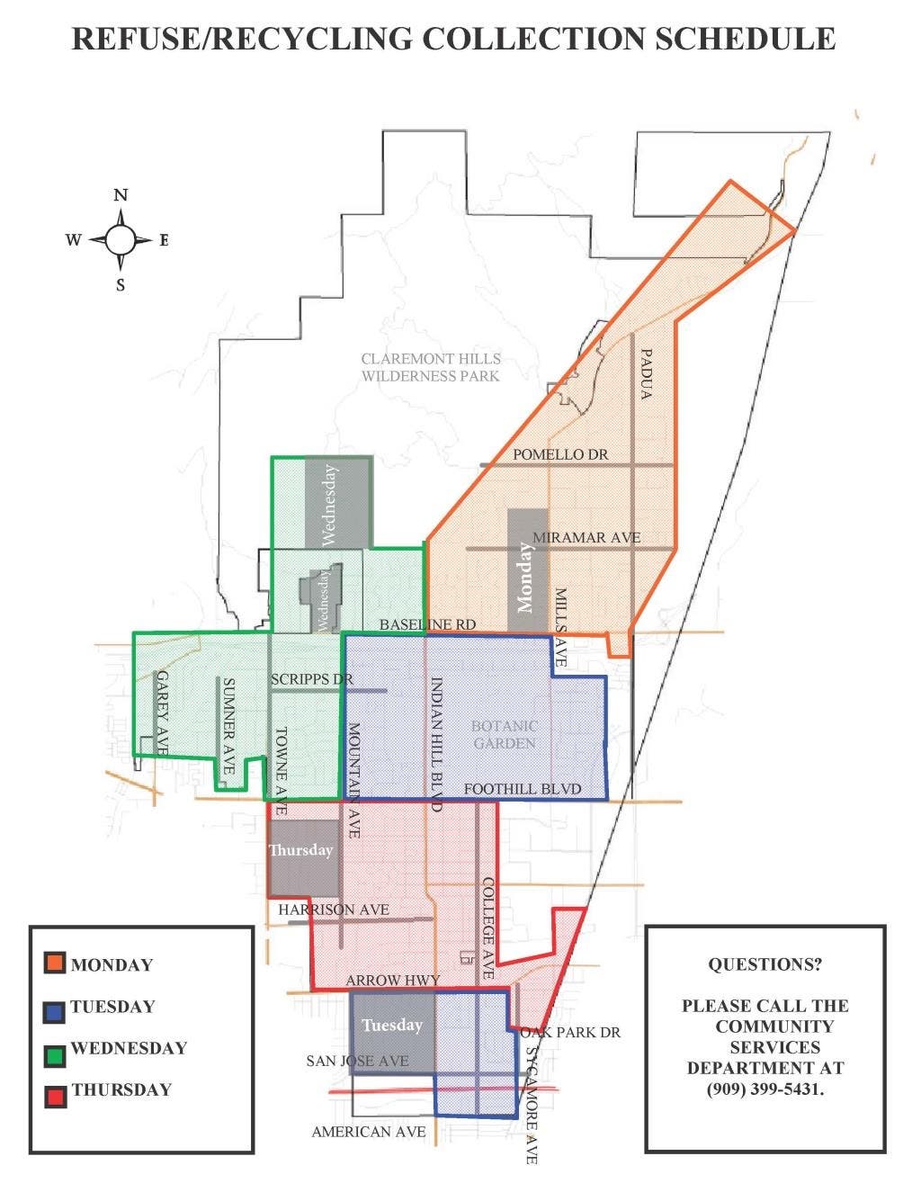 The attached map shows the approximate locations of the pilot program routes. Approximately 1,420 households, or 17% of residential customers, will participate in the pilot program beginning February 1, 2021. Pilot program participants will receive program information by mail and instructions regarding proper sorting. The pilot program will run through December 31, 2021, after which the program will be expanded to serve all Claremont single-family customers. Customers will questions regarding the pilot program are encouraged to contact the Community Services Department at (909) 399-5431.