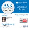 Legal matters affect many cancer patients, survivors and their families. Learn about the most common cancer-related legal issues including: health insurance options, employment rights and reasonable accommodations in the workplace, taking time off work, and access to disability insurance and government benefits. FREE ADMISSION.