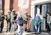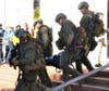 A SWAT team was used and two helicopters were flown in to allow a military law response in which law-enforcement officers repelled down. Victims were carried out on backboards to a triage area.