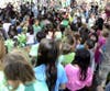 They may have tried to look inconspicuous, but the group of 100 children and the large group of parents and loved ones who converged on the open square at the West Village actually attracted a lot of looks on Sunday.