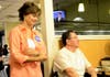 The crowd, overwhelmingly Democratic, was part of an Organizing for America debate viewing event in Claremont. Participants came from various cities to listen together as a group.