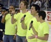 The night also featured the national anthem from a quartet from the school, and fundraisers around the arena benefitting the university. Also, facts about the school were shared by public address announcer Jeff Pope, along with environemental tips shared on the scoreboard.