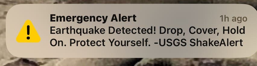 Many residents report that they received an extremely loud Emergency Alert on their phones, but did not actually feel the earthquake. The first magnitude reported by the USGS was 4.6 but it was quickly downgraded.
